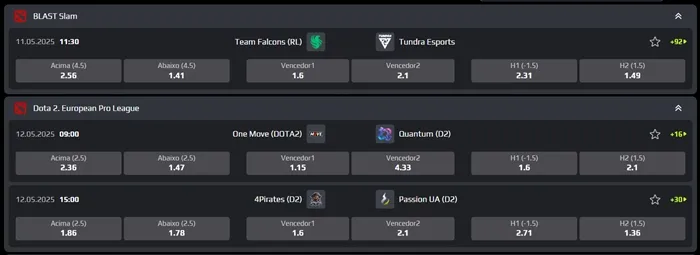 Com a conta ativada e saldo disponível, vá até o menu principal da casa de apostas e acesse a seção de eSports. Nela, localize o jogo Dota 2. Você verá uma lista com os campeonatos disponíveis no dia, com as partidas agendadas ou em andamento.